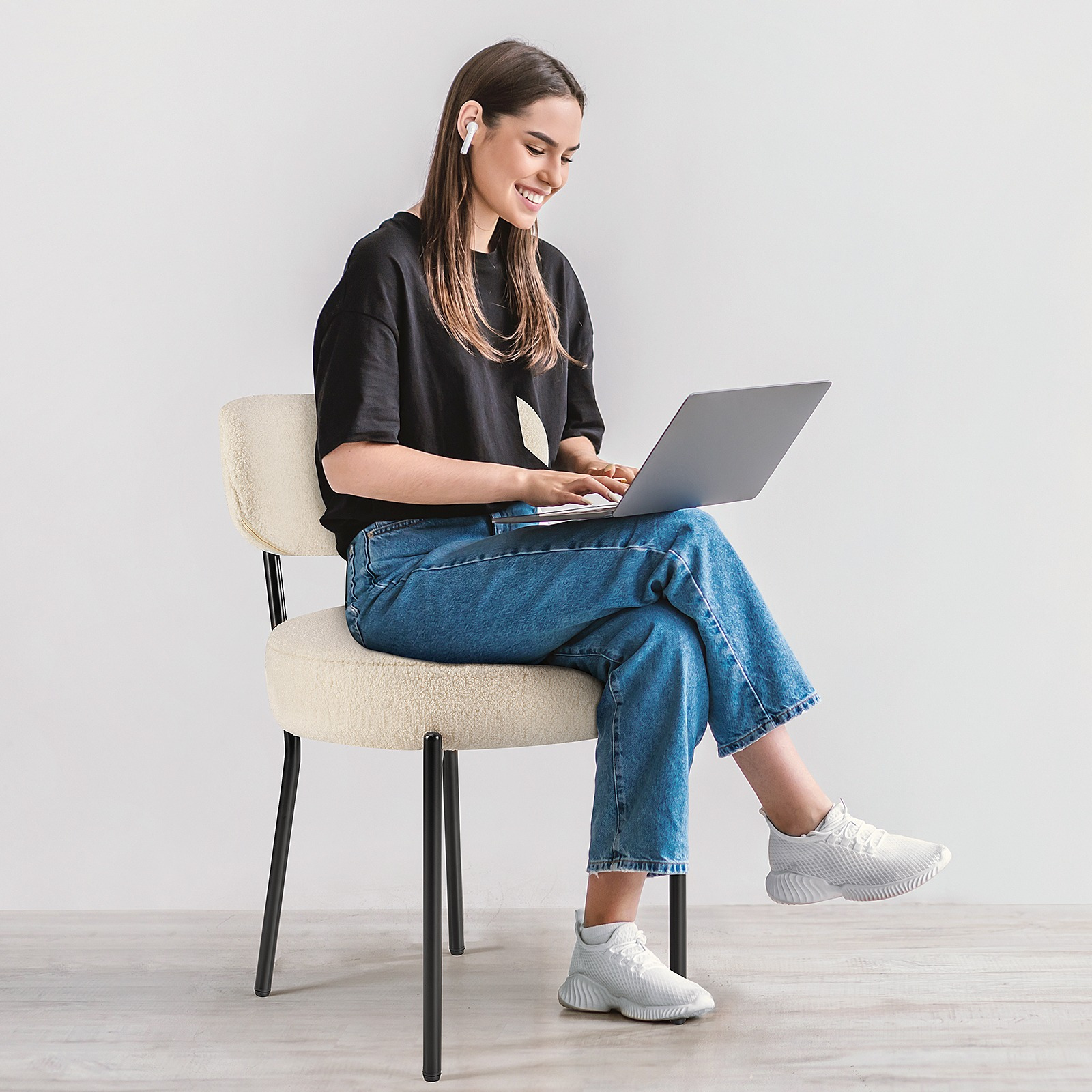 Dining Chairs Set of 2, Boucle Upholstered Kitchen Chairs with Curved Backrest & Metal Legs